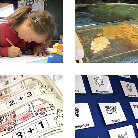 Der Unterricht an unserer Schule ist im Fächerangebot vergleichbar mit jenem in einer Lernhilfe– oder Grundschule. Auch unsere Schüler kommen — nach ihren individuellen Fähigkeiten — in den Genuss eines Deutsch–, Mathematik– und Sachunterrichtes etc. Ergänzt und abgerundet wird der Unterricht durch individuell differenzierte Angebote im Lebenspraktischen und Kommunikativen Bereich. Auf den folgenden Seiten erhalten sie einen Einblick in unseren unterrichtlichen Alltag. Die Inhalte sind inhaltlich sortiert, um ihnen die Orientierung zu erleichtern. Da es sich um einen Überblick handelt, können nicht alle Lernfelder dargestellt werden.